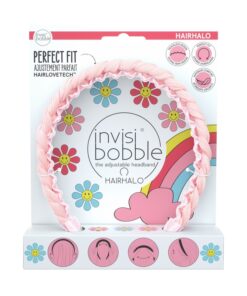 The adjustable headband gets a limited edition design. Invisibobble’s pink HAIRHALO from the Retro Dreamin Collection brings a light feeling of spring with a braids-like effect that transforms any hair style into a fun statement look. The headband is easily adjustable and fits perfectly on your head.