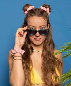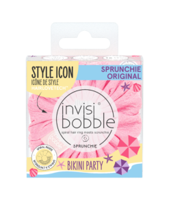 Designed with material similar to a bikini, the SPRUNCHIE not only looks summery but is also comfortable to wear after a dip in the sea.